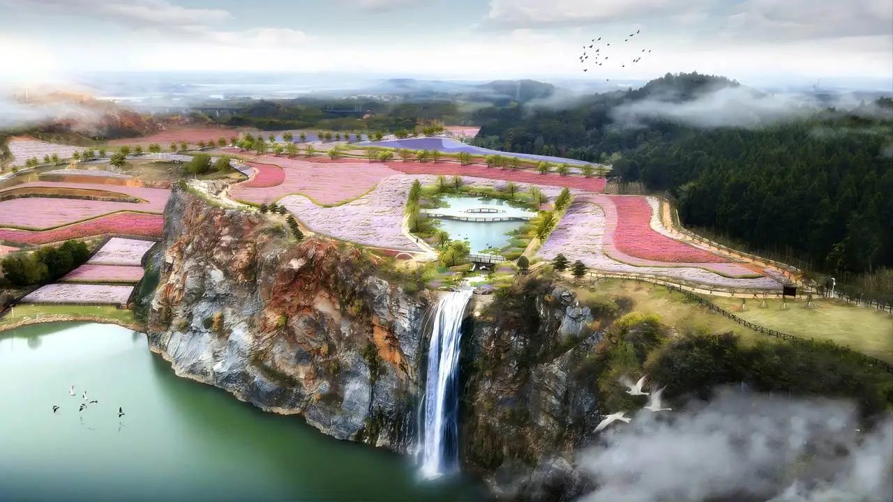 景区内有近 50 米高的水瀑飞流而下,激起浪花层层;仙女池、明月池、灵岭寻梅、荷塘月色、七彩梯田、彩虹花田、高山草甸等生态景点在碧绿的矿坑水塘四周错落有致地分布着;油菜花、格桑花、樱花、桃花、梅花、虞美人则会在一年四季次第开放,因此景区在众多社交平台上也获得了“武汉稻城亚丁”“武汉小新西兰”的美誉。漫步于其中,你就会看到一幅春赏花、夏纳凉、秋观叶、冬咏梅的四季山林景观图。