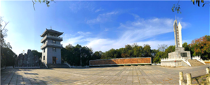 山顶上耸立着革命烈士纪念碑