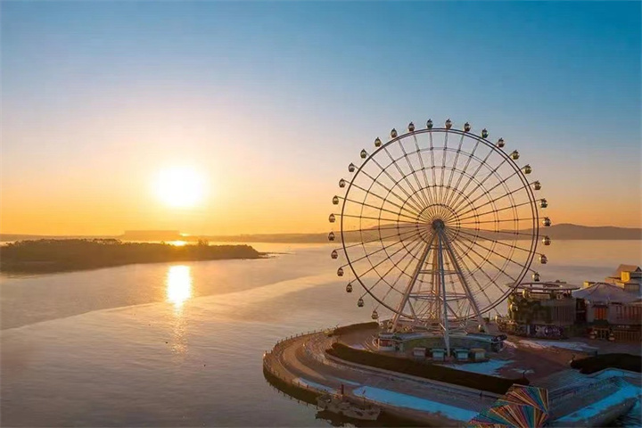 网红必打卡项目,坐在摩天轮上看日落、看“海”,浪漫百分。