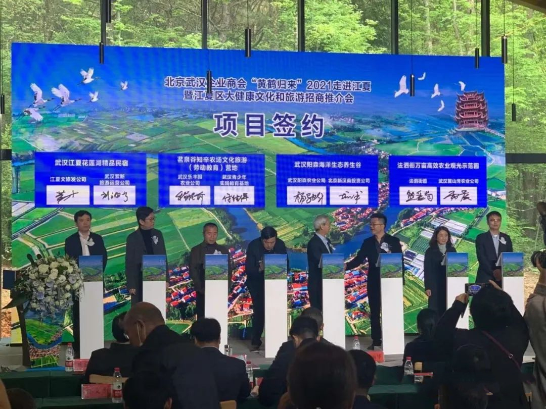 4月6日,北京武汉企业商会“黄鹤归来”2021走进江夏暨江夏区大健康文化和旅游招商推介会在江夏区湖泗街海洋村举行,60多位在北京创业有成的武汉籍企业家回到家乡,签约投资11个乡村振兴项目,总金额41.45亿元!