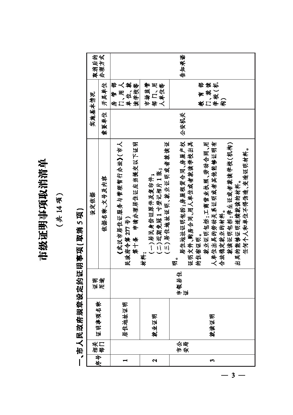 根据《市人民政府关于修改和废止部分规章的决定》(市人民政府令第308号)和《市人民政府关于修改和废止部分规范性文件的决定》(武政规〔2021〕4号)精神,经市人民政府同意,决定对上述市人民政府规章和市人民政府文件中涉及取消的证明事项(共14项)清单予以公布。