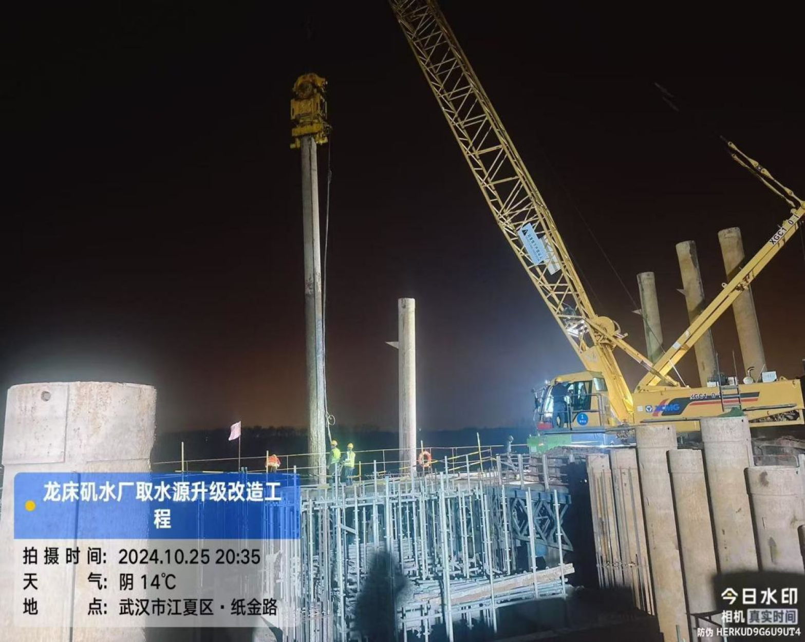 项目负责人介绍:“我们正在建设的是龙床矶水厂取水源项目的驳船摇臂管承台。该项目由江夏区水务总公司投资建设,截至目前,已完成了工程总量的70%。”